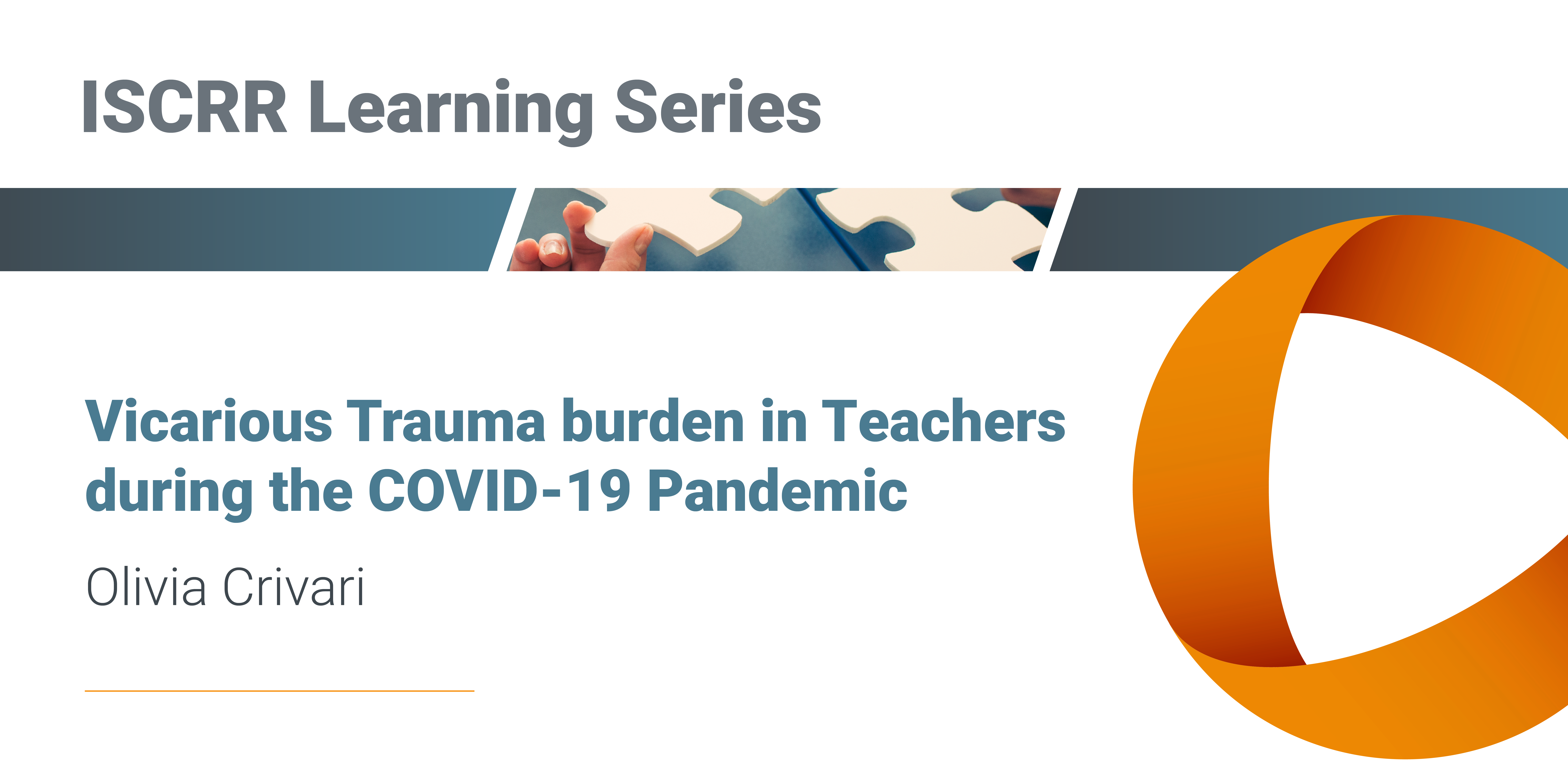 Register here for the next ISCRR Learning Series webinar to be held on Tuesday 25th October, 11am AEDT. Olivia Crivari will discuss her research findings examining Vicarious Trauma (VT) burden in teachers.